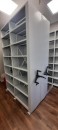 Там, где позволяло пространство, были установлены мобильные стеллажи, увеличивающие в 2 раза объём хранимого, вдоль стен были поставлены стационарные стеллажи.
