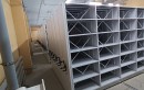 Оптимальным вариантом стало производство и установка стеллажей серии Т с высокой несущей способностью. Высота стеллажей — 3000 мм, длина — от 4000 до 7000 мм в зависимости от расположения секций в помещении. Это позволило задействовать всю рабочую площадь, не препятствуя движению и легкости доступа. Учитывая расположение колонн и коммуникаций, мы точно спроектировали расстановку, соблюдая все технические требования.