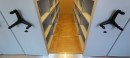 В арочных нишах были установлены разноуровневые передвижные стеллажи серии Л с фальшполом. Они были адаптированные как по высоте, так и по глубине помещения. Стеллажи были дополнены выдвижными полками. Для широкоформатных изданий между оконными проёмами смонтировали стационарные полочные стеллажи с широкими полками— 60 см.