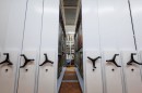 Разработали по индивидуальным размерам и установили передвижные металлические стеллажи с двусторонними