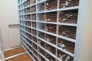 Разработали по индивидуальным размерам и установили ячеистые передвижные металлические стеллажи.