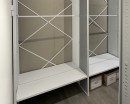 Разработали индивидуальную схему расстановки, подобрали оптимальные габариты и произвели высокие стационарные стеллажи серии СА с высотой 3200 мм. Каждый стеллаж оборудован двумя уровнями штанг для одежды и нижней полкой для хранения коробок.