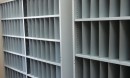 Разделитель устанавливается в процессе сборки металлических стеллажей с ячейками в перфорационные отверстия на полках.
