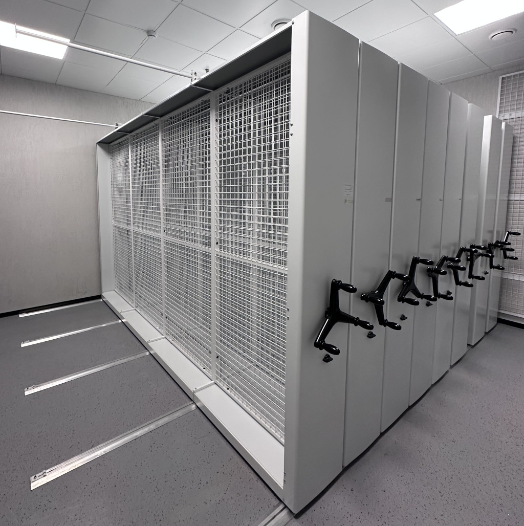 Мобильные стеллажи с сетками для картин и вертикального хранения фондов