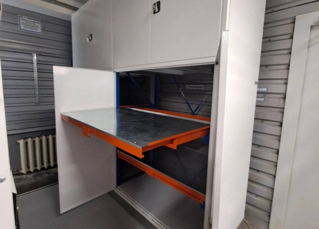 Этот тип автоматизированных передвижных стеллажей для склада оснащен электроприводом и управляется компьютерной АРМ системой. Это современное и технологичное решение.