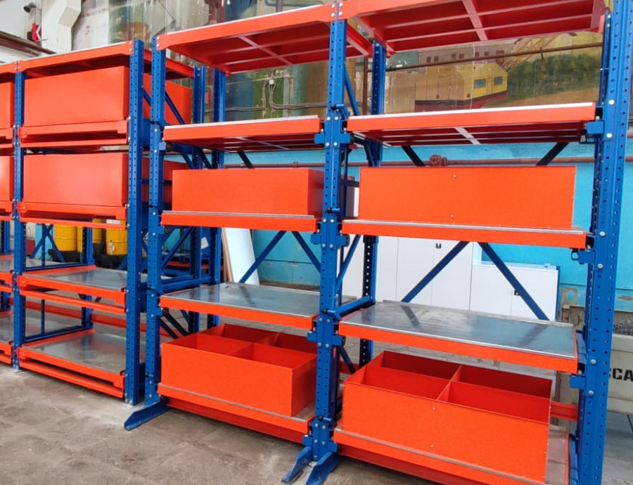 Отправьте заявку, чтобы узнать цену на изготовление стеллажей с выдвижными лотками на заказ по индивидуальным размерам с доставкой с завода производителя по городам Калужской области и России.